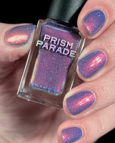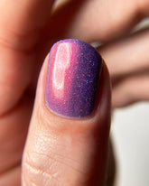 Moonlit Coronation is an indigo based polish with intoxicating pinkish-red shimmer and filled with silver reflective glitter.