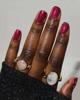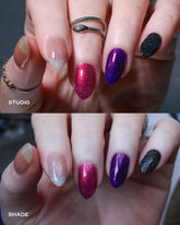 Shown here over various shades from our Bloodlust collection, black, white, and nude nails.