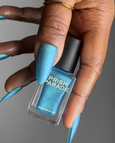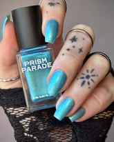 Ice Queen is a baby blue lacquer with glacial blue shimmer and microfine holographic glitter.