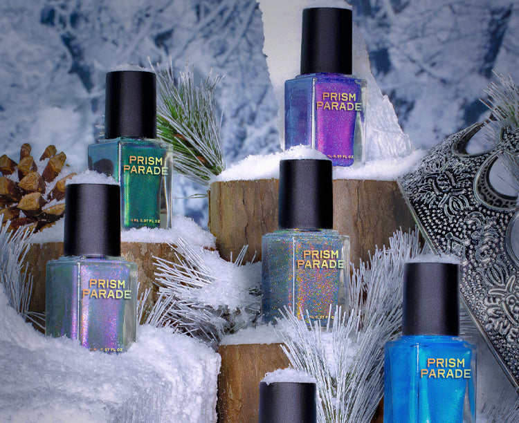 Frostborne is our ultimate winter lineup of six icy shimmery polishes, laced with soft sparkles, reflective glitter, and frozen magic.